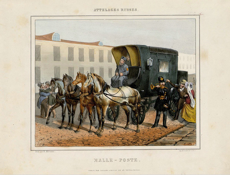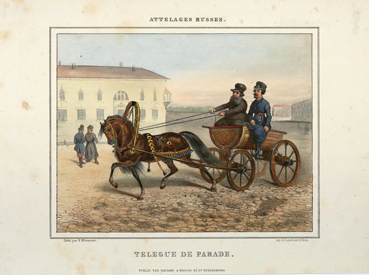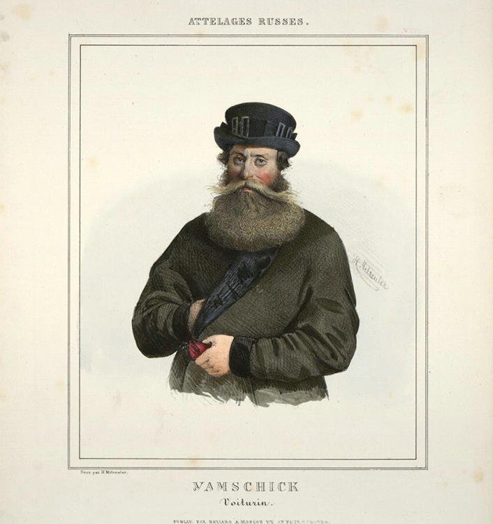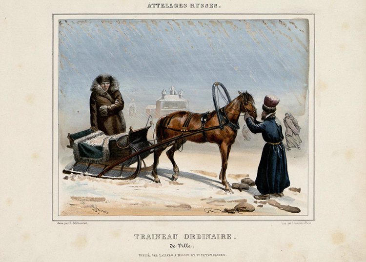 «Ямщик», гравюра по рисунку рисунку Х. Митройтера из серии «Русские упряжки». Здесь и далее: графика с выставки «Москва глазами иностранцев»