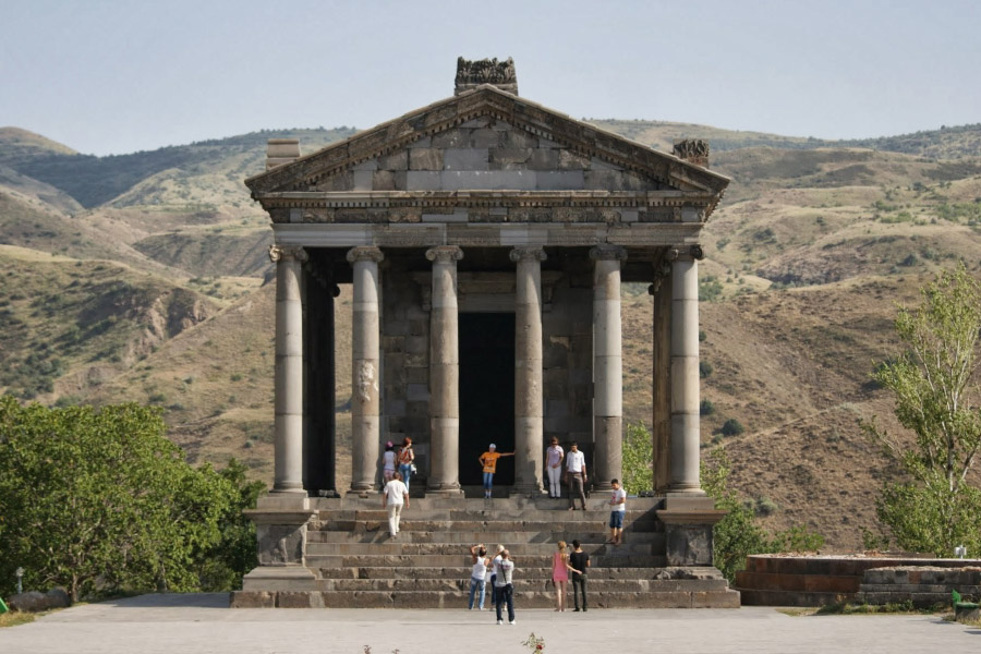Языческий храм Гарни, построенный в I веке нашей эры царем Трдатом I, напоминает маленький античный Рим: во-первых, сам храм, посвященный богу солнца Митре, во-вторых, развалины царского дворца и, в-третьих, бани-термы. Осмотр храма не займет много времени, поэтому стоит обязательно спуститься вниз и посмотреть на «симфонию камней»